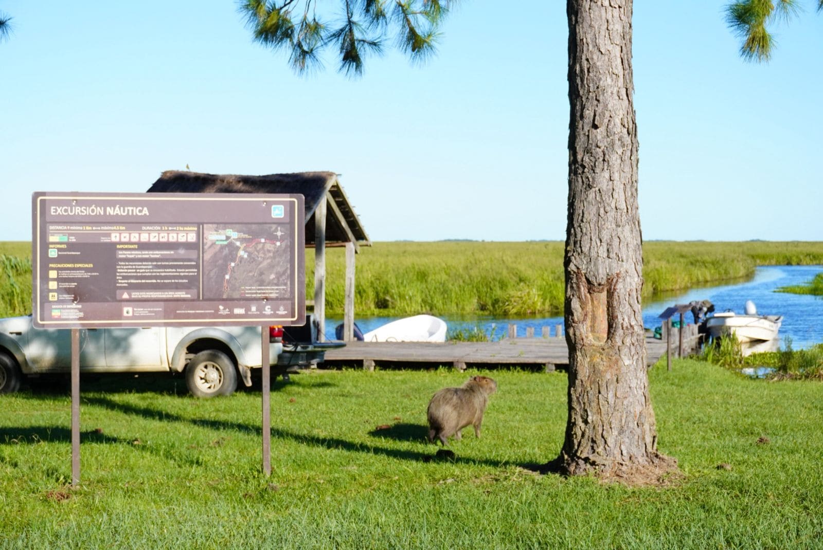 (capacidad para 100/150 comensales), cocina, galerías con fotografías de aves, senderos con